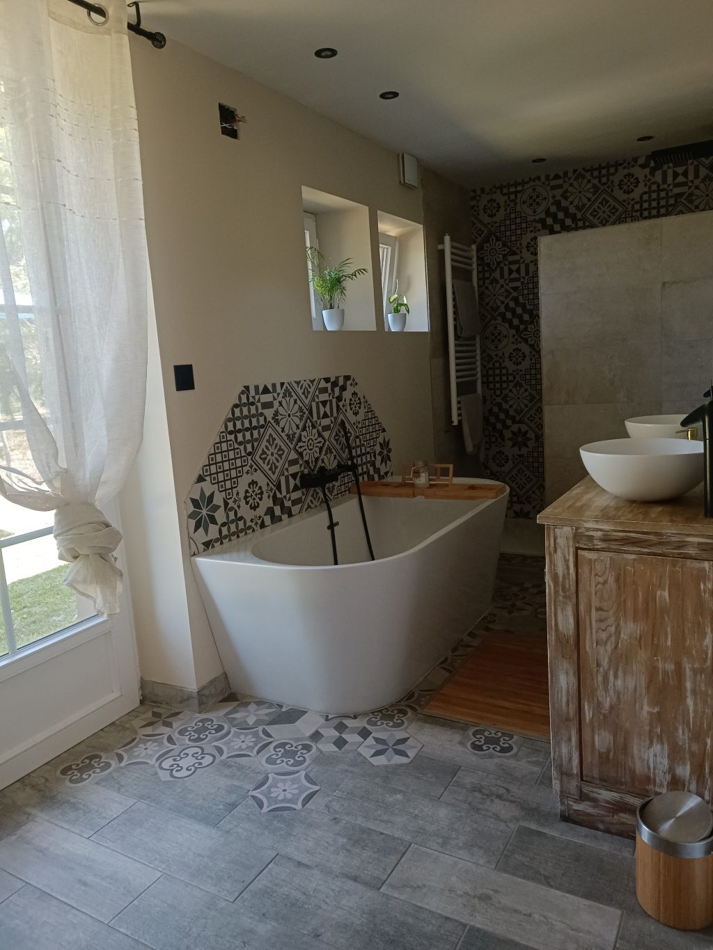 Voici une belle installation de baignoire avec accès pour personne à mobilité réduite réalisée par la SARL BR ( Bruno ROULLET ) Chez Mr AUPETIT dans la commune de Baule 45130 dans le Loiret 45