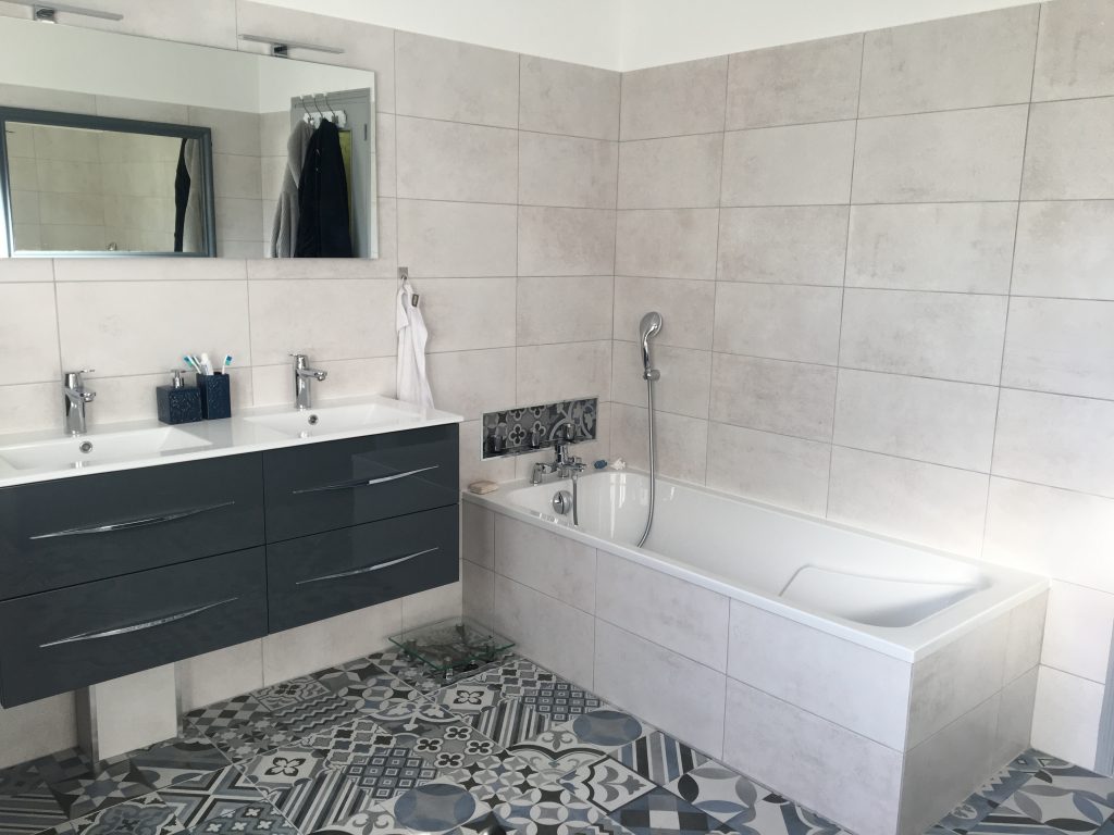 Voici une salle de bain complète réalisée par la SARL BR ( Bruno ROULLET ) Chez Mme & Mr HENNEBELLE dans la commune de Baule 45130 dans le Loiret 45