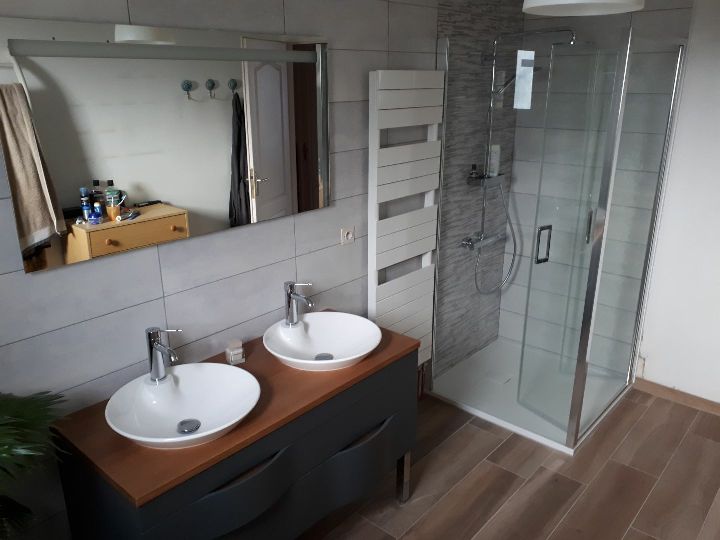 Voici une salle de bain complète réalisée par la SARL BR ( Bruno ROULLET ) Chez Mme & Mr FROBERT dans la ville de Cléry st André 45370 dans le Loiret 45