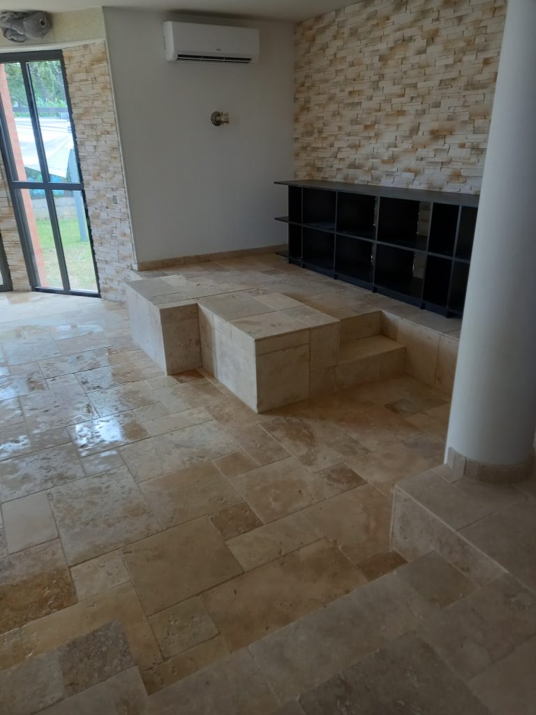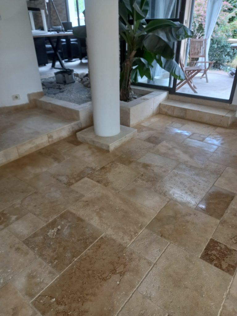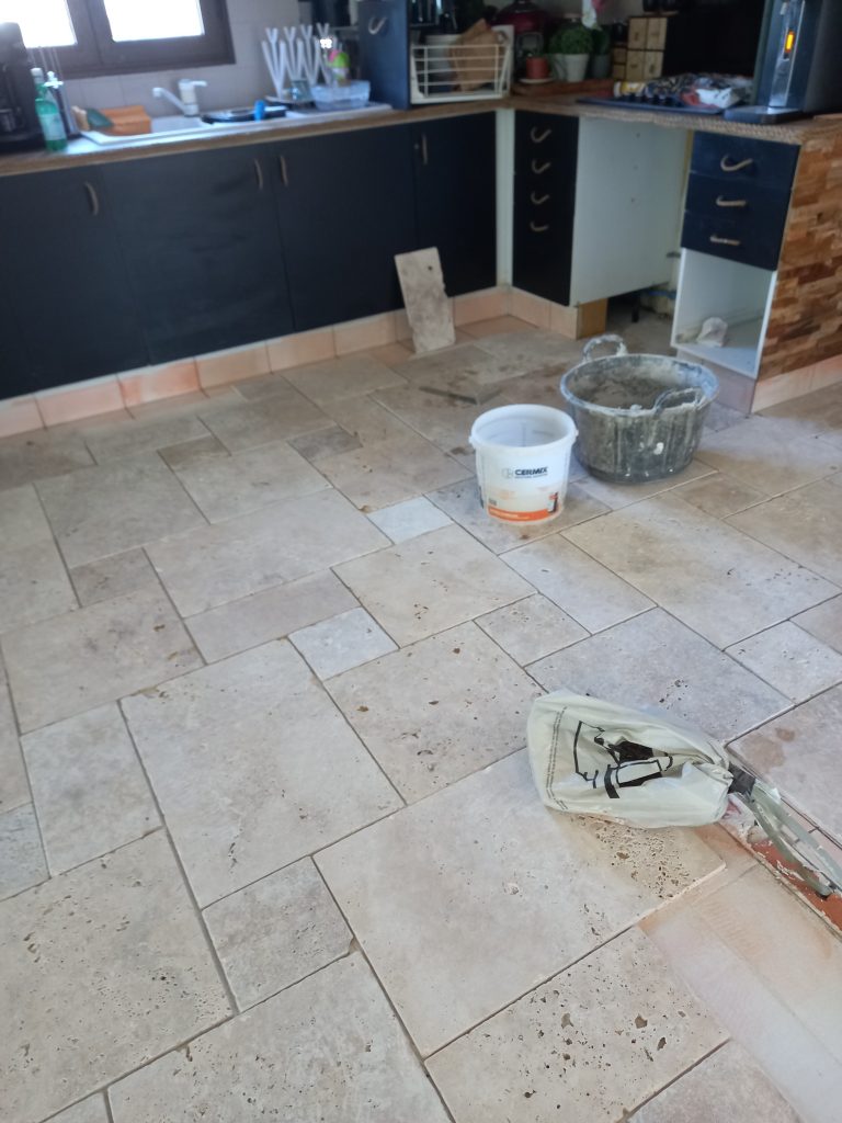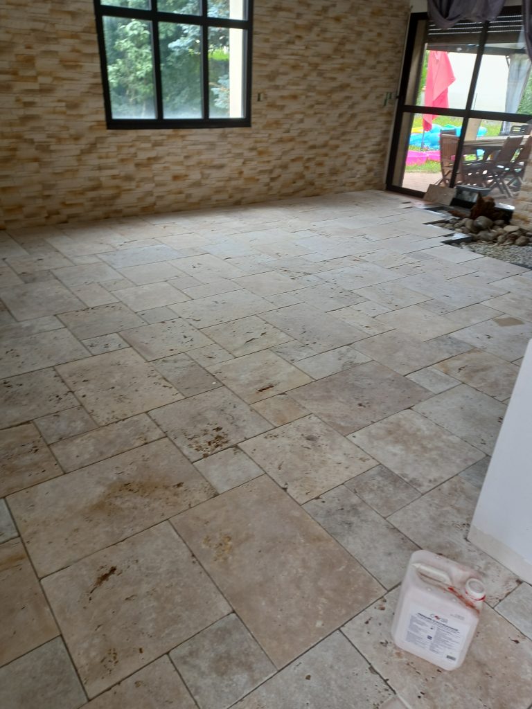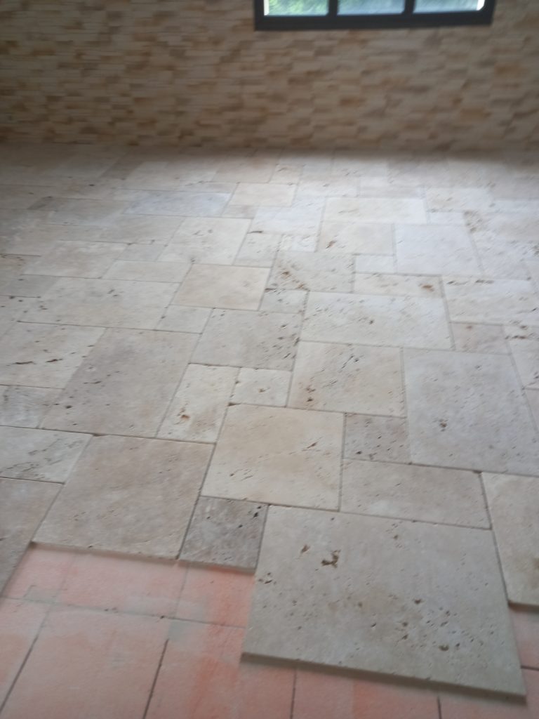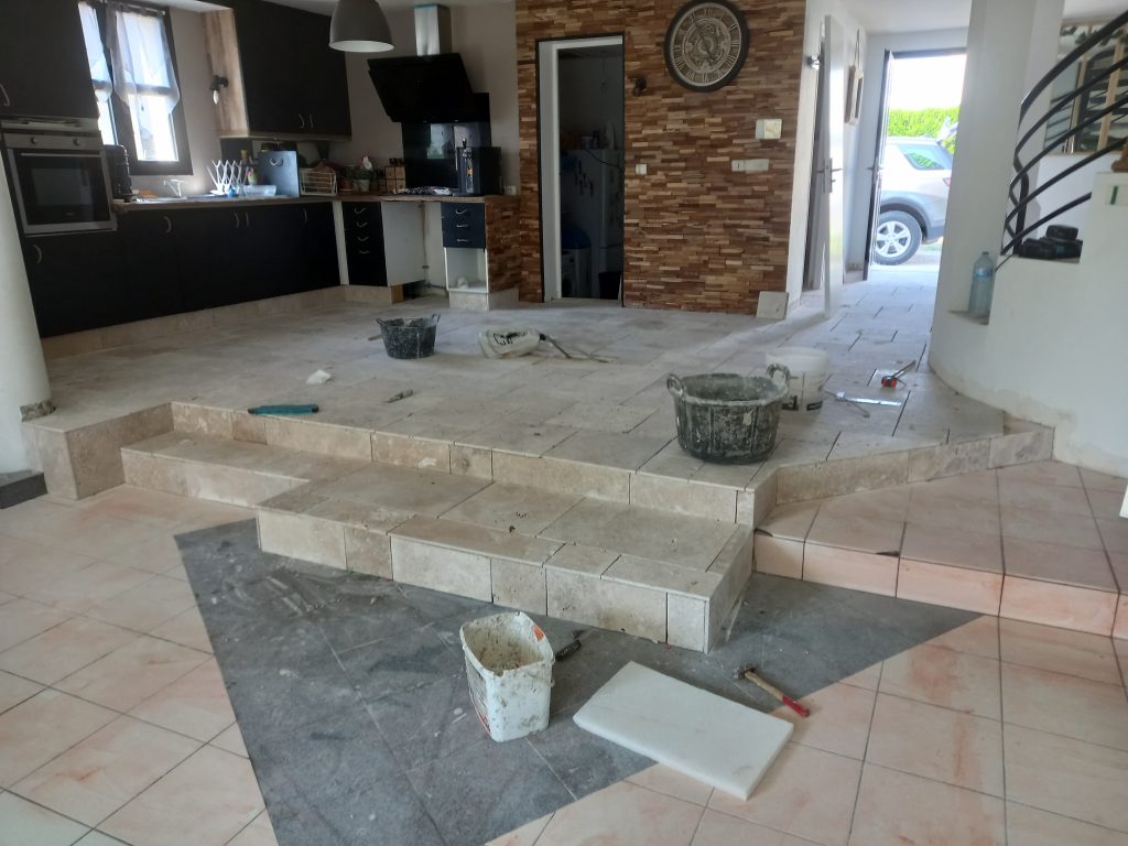 Pose de travertin 4 modules dans un pavillon à Cléry St André