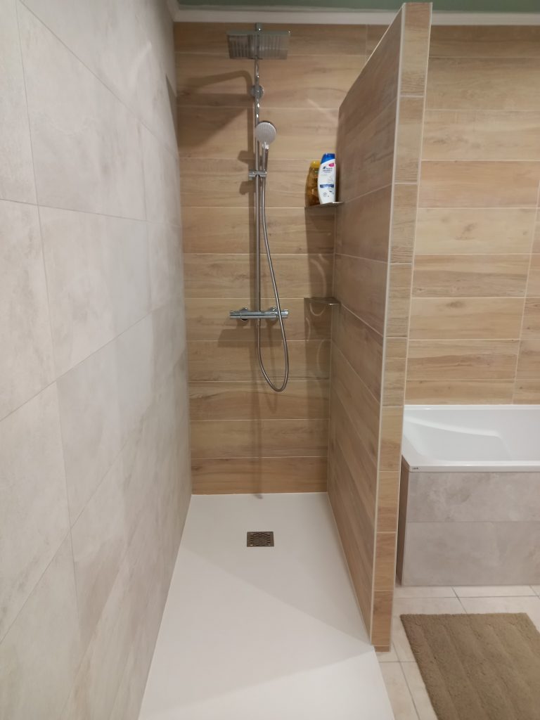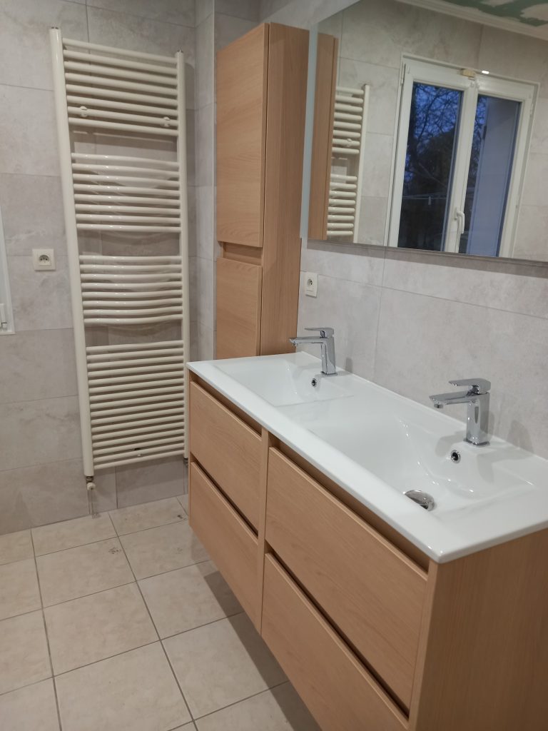 Réfection de salle de bain complète, création cloisons plus sèche serviette Mme & Mr HOUDA à ST AY